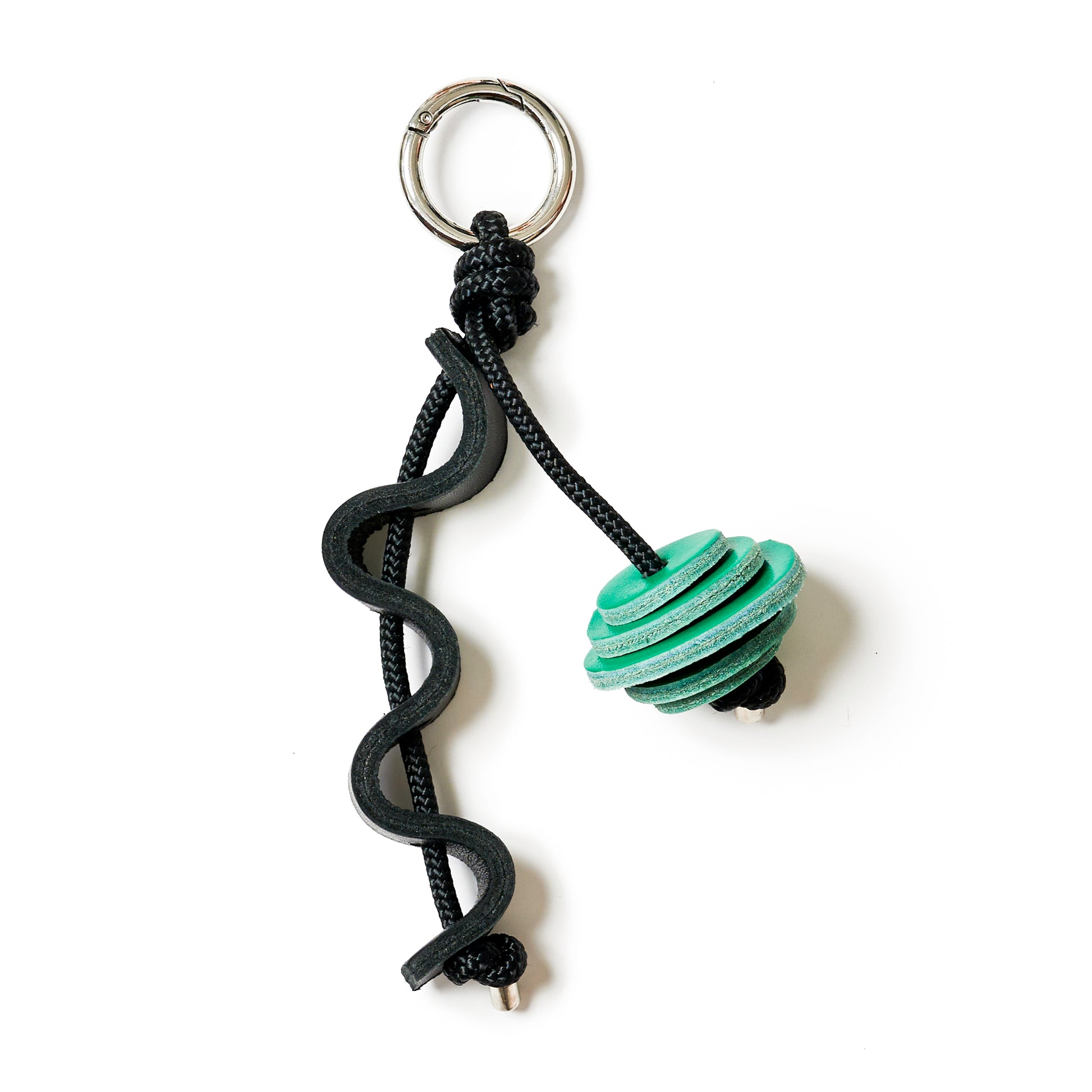Rope is attached to a silver carabiner ring which can be easily attached to a bag strap, keys etc.