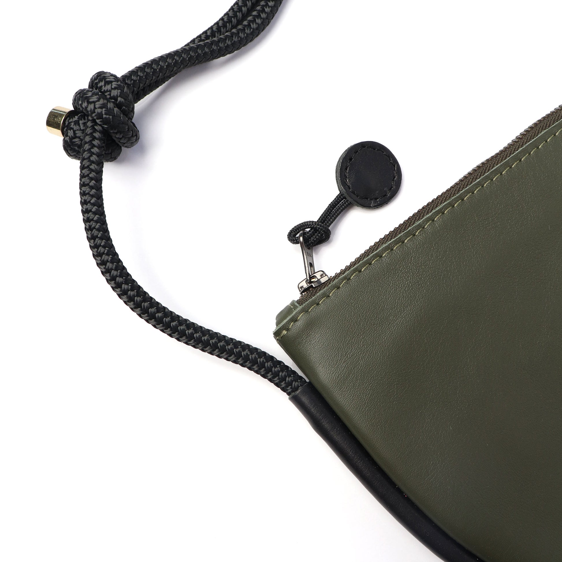 A half-moon shaped cow leather sling bag with an adjustable rope strap. The length of the strap can be adjusted by moving the knots up or down so that the bag can be worn crossbody or as a shoulder bag. The bag is slim, but large enough to fit all essentials like a large wallet or a glasses case.