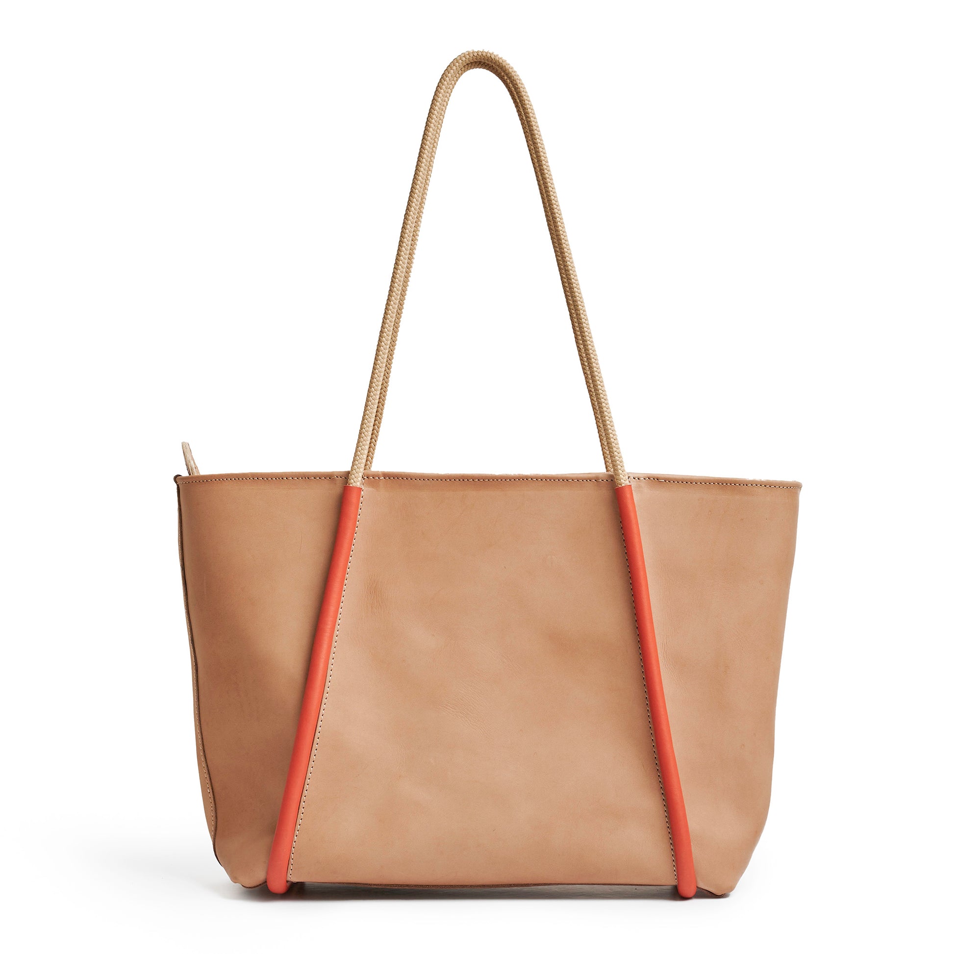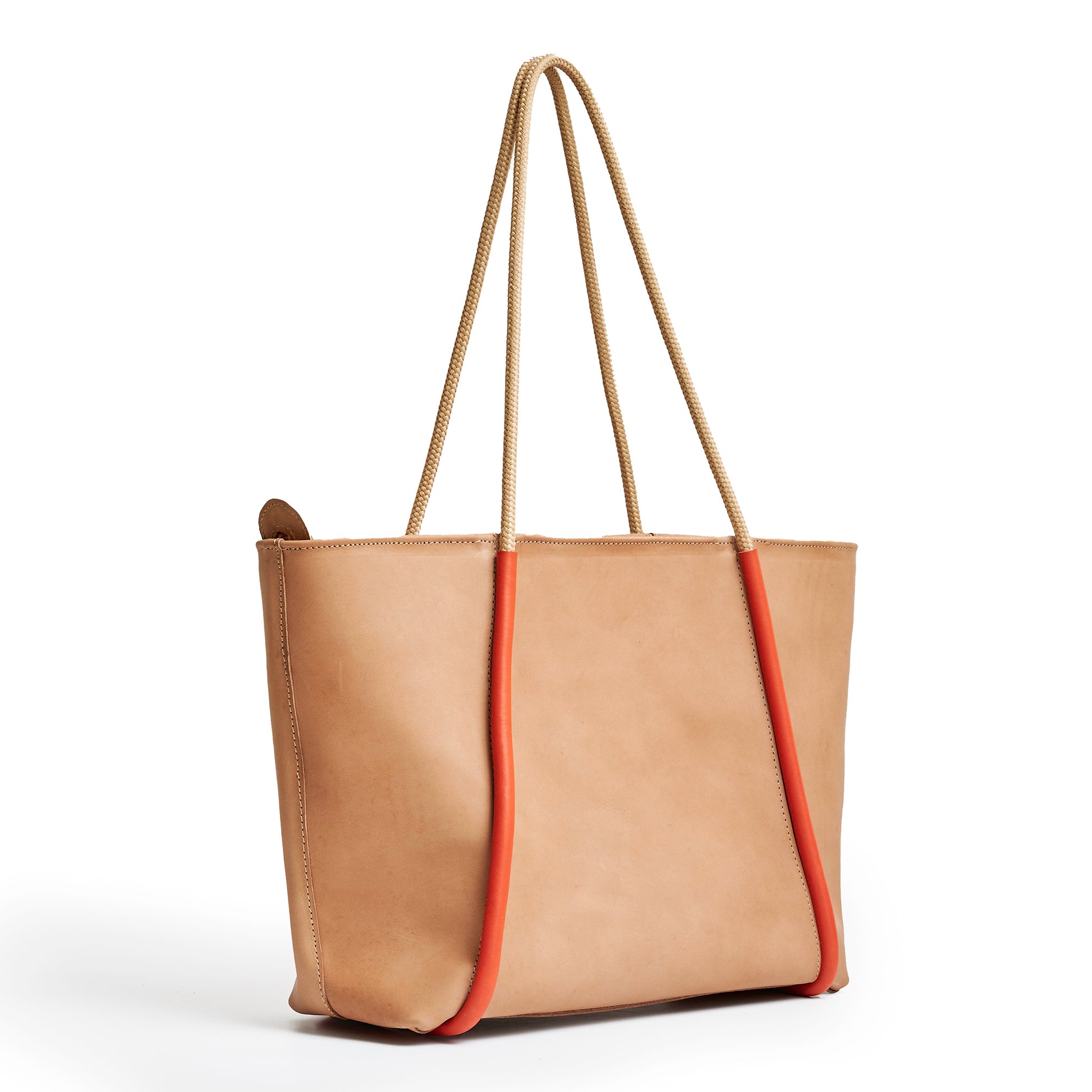 Classic cow leather tote bag large enough to fit a 15” laptop and much much more. The bag closes securely with a zip and comes with a small slip pocket on the inside as well as a leather label with a gold embossed Dyad logo. YKK zip.
