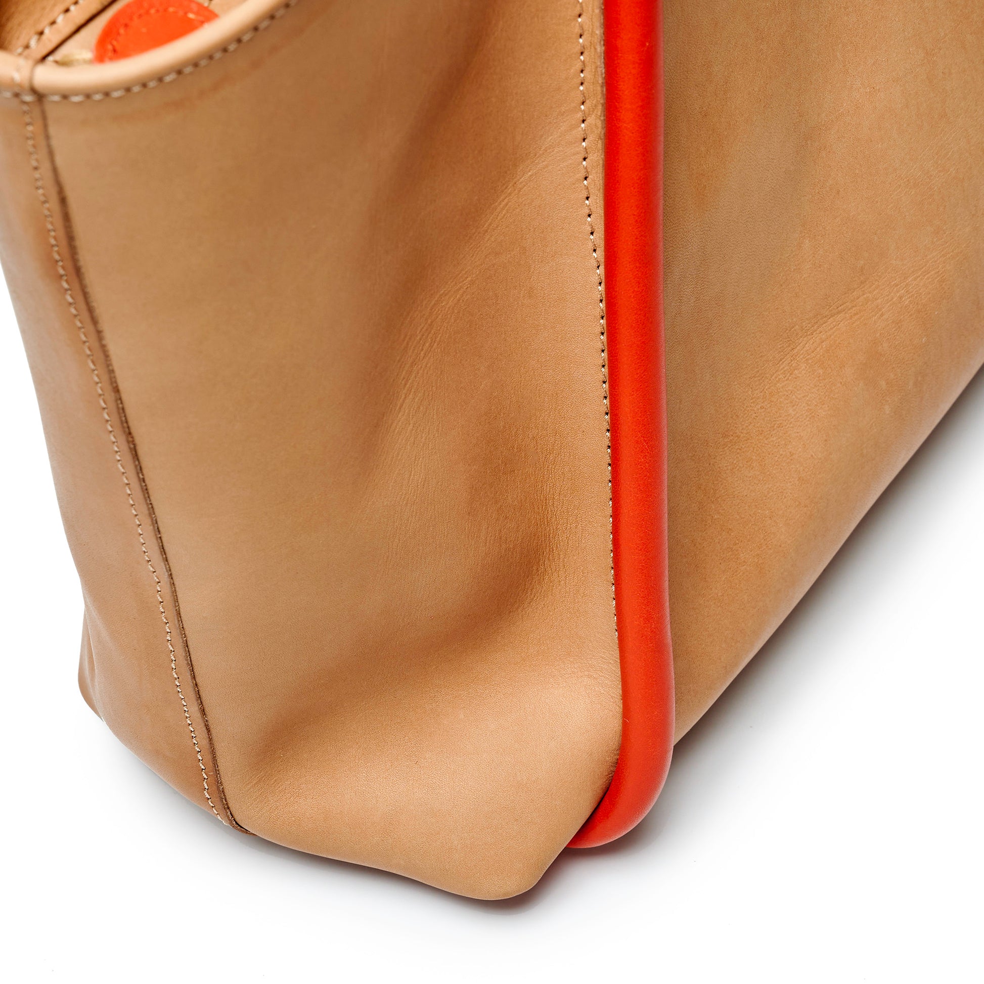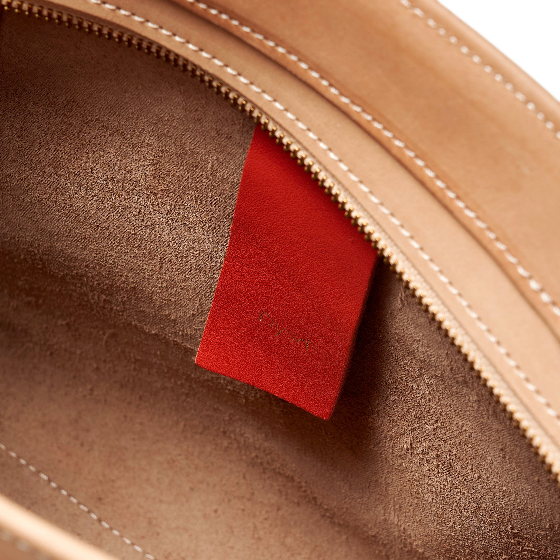 Please note: The leather used for this bag is Vegetable Tanned Leather (NOT VEGAN) and is a classic leather, tanned in an ancient tradition. There are slight colour variations from hide to hide and it will not remain pristine. Visible scratching is to be expected. We do not view these marks as defects and rather view them as developing an individual character. The classic leather patina created by daily wear-and-tear is meant to change and evolve over time. This type of leather is very durable and made to last decades to come. The beauty lies in embracing the change and evolving character of the bag.